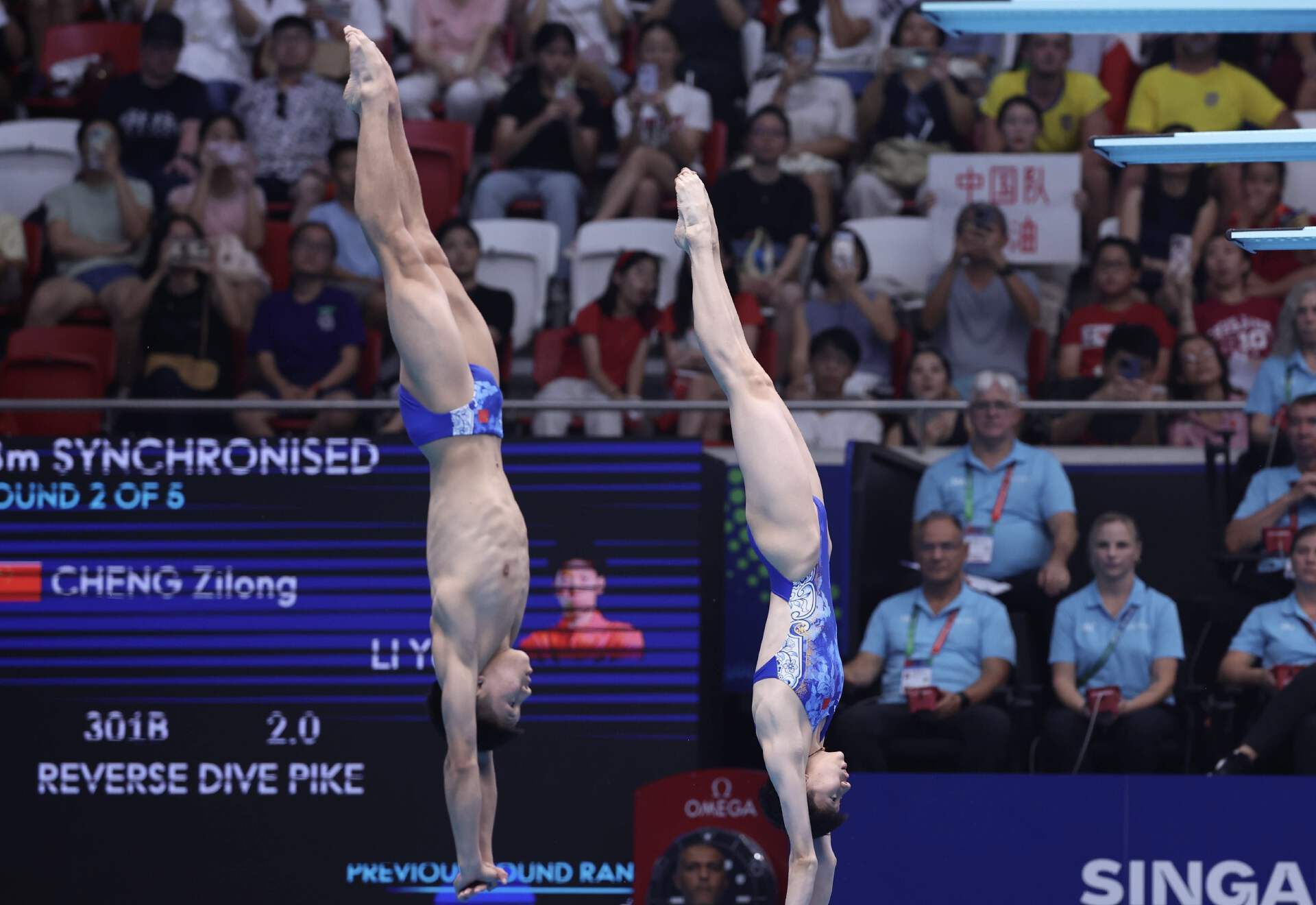 女子3米板预赛,陈艺文和陈佳分别以363.90分和359.35分排名第一和第二,顺利晋级决赛。因参赛协会决赛人数限制,林珊无缘晋级。男子10米跳台项目,练俊杰以500.60分排名第一,白钰鸣位列第二,晋级决赛。首金来自混合团体项目,决赛中,由郑九源、赵仁杰、崔家溪和陈佳组成的中国队与墨西哥队比拼激烈,分数一直紧咬。最后一轮崔家溪和赵仁杰得到86.40分,帮助中国队以469.40分逆转对手,获得冠军,墨西哥队以8.55之差获得亚军,加拿大摘铜。